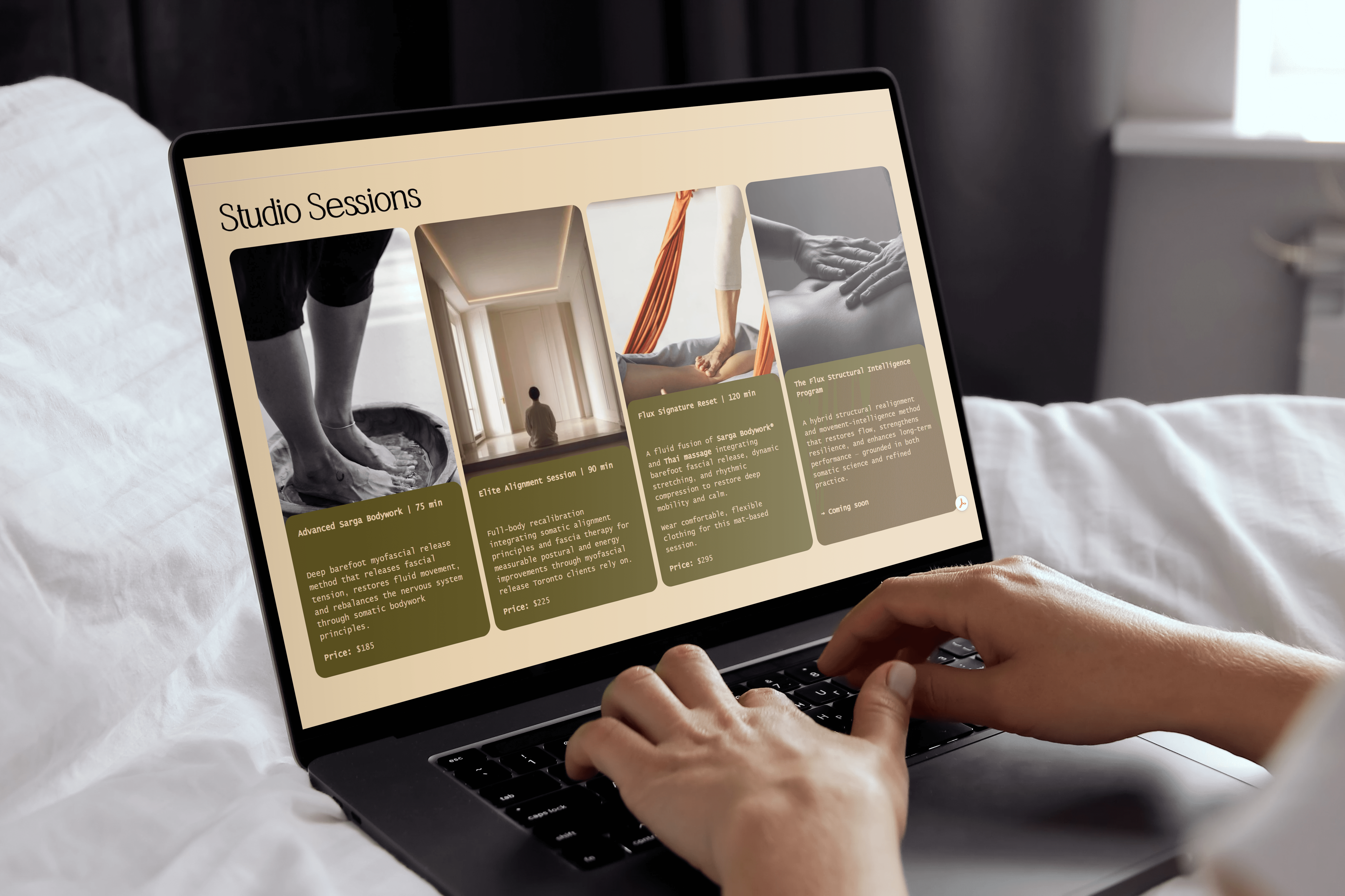 The challenge was twofold: create a brand that feels grounded and authentic to the somatic space — where trust, calm, and presence are everything — while also positioning Flux Studio as a professional, established practice rather than a side project. She also needed a website that could serve as a single, clear destination for prospective clients to understand her work and book.