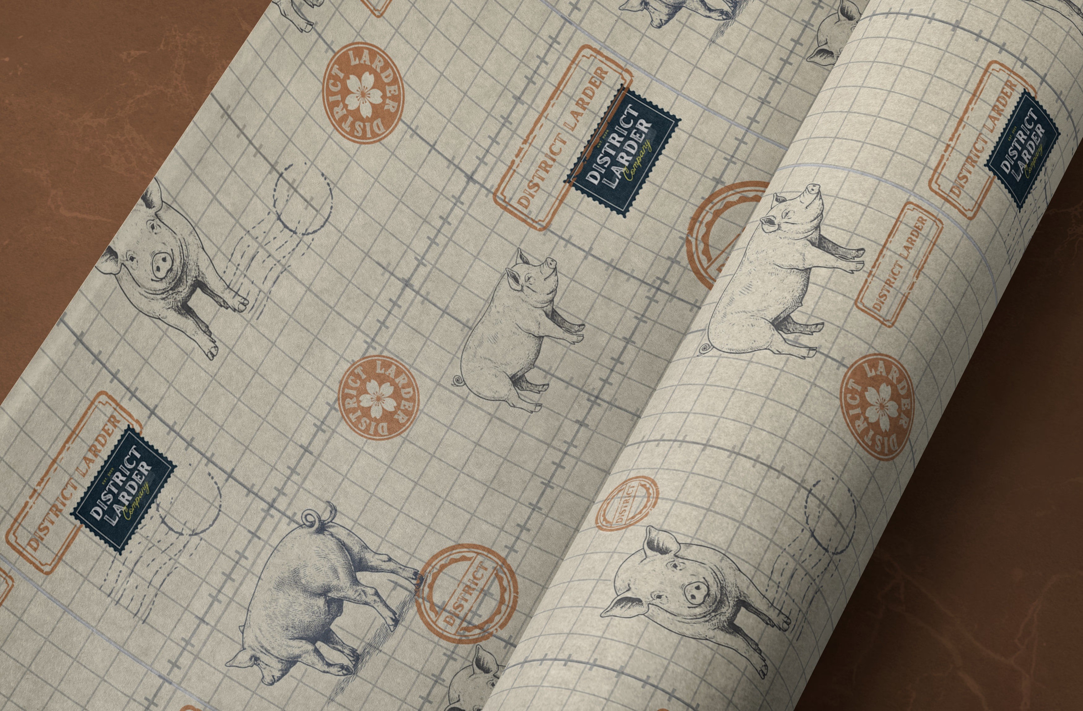 District Larder Co. is preparing to launch with a fully designed website, a scalable brand pattern system spanning packaging, staff uniforms, and storefront signage, and a set of physical brand moments — from custom stamps to anime-inspired stickers — that turn everyday touchpoints into brand experiences. This project represents the intersection of digital design, physical brand touchpoints, and hospitality strategy — designing not just how a brand looks online, but how it feels when you walk past the window, unwrap a sandwich, or pocket a sticker.