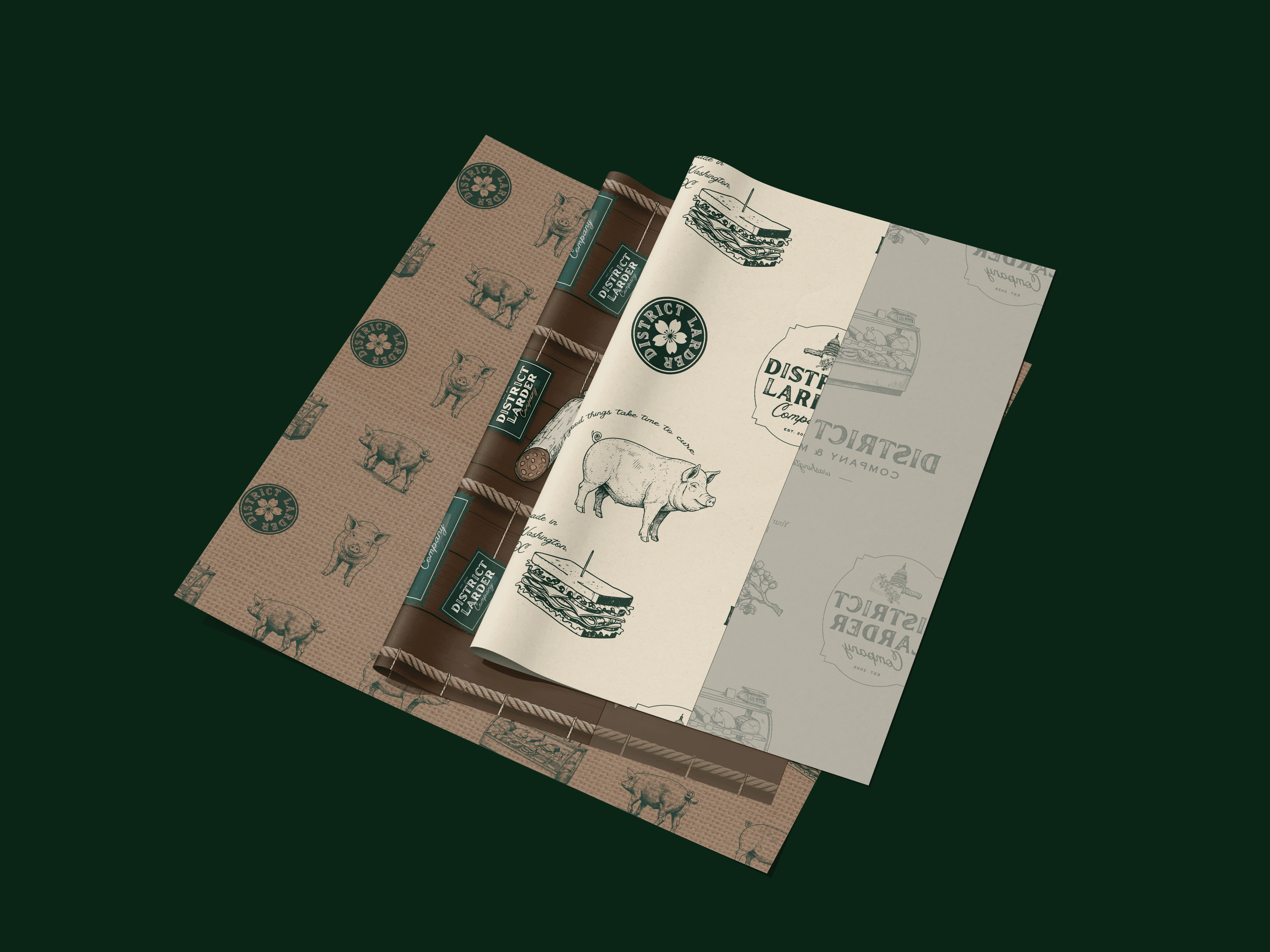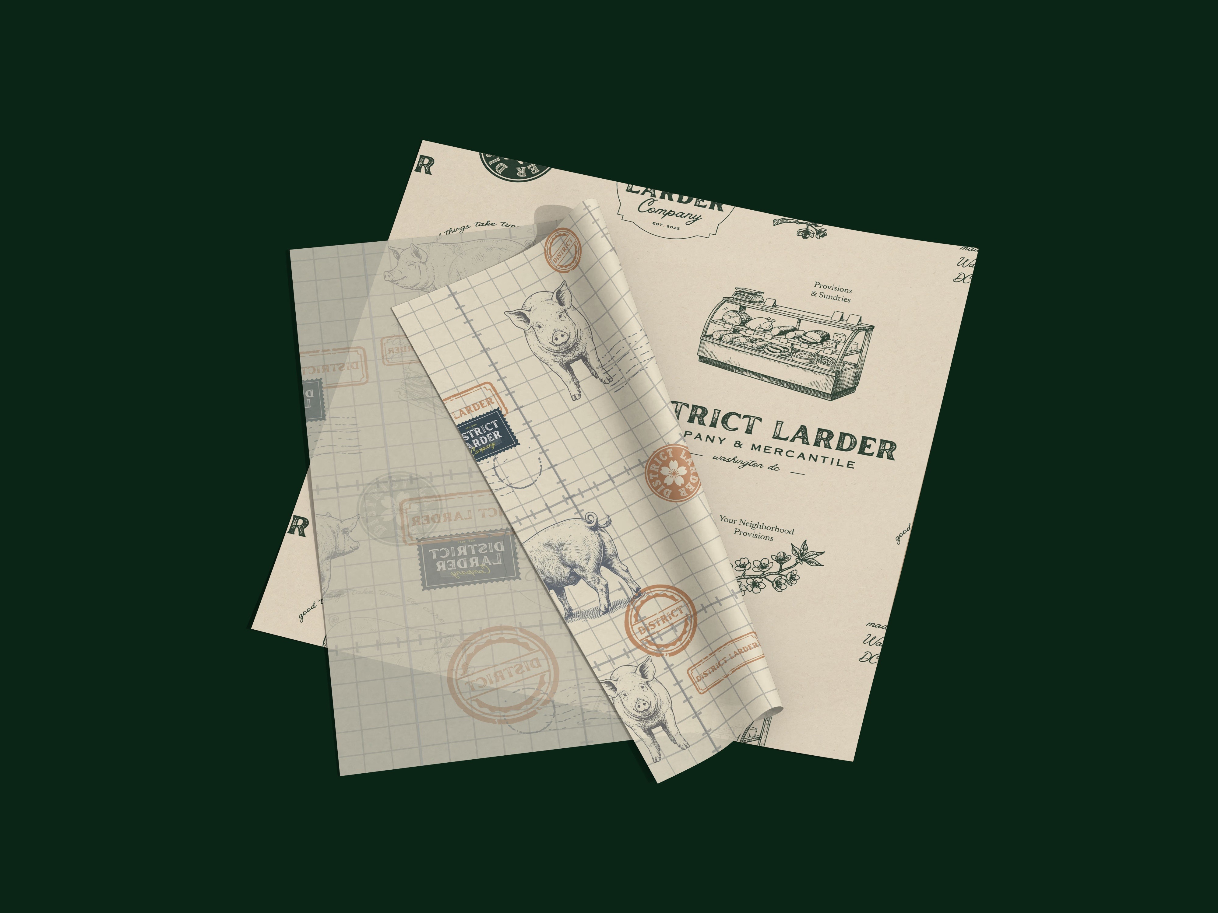 District Larder Co. is a new-concept delicatessen, restaurant, and curated marketplace in Washington, DC — a venture from a RAMMY award finalist combining house-cured charcuterie, artisan provisions, and a full dining experience under one roof. Working as a senior designer alongside District Maven, a DC-based hospitality marketing agency, the challenge was building a cohesive brand presence across both digital and physical touchpoints before the business even opened its doors.
