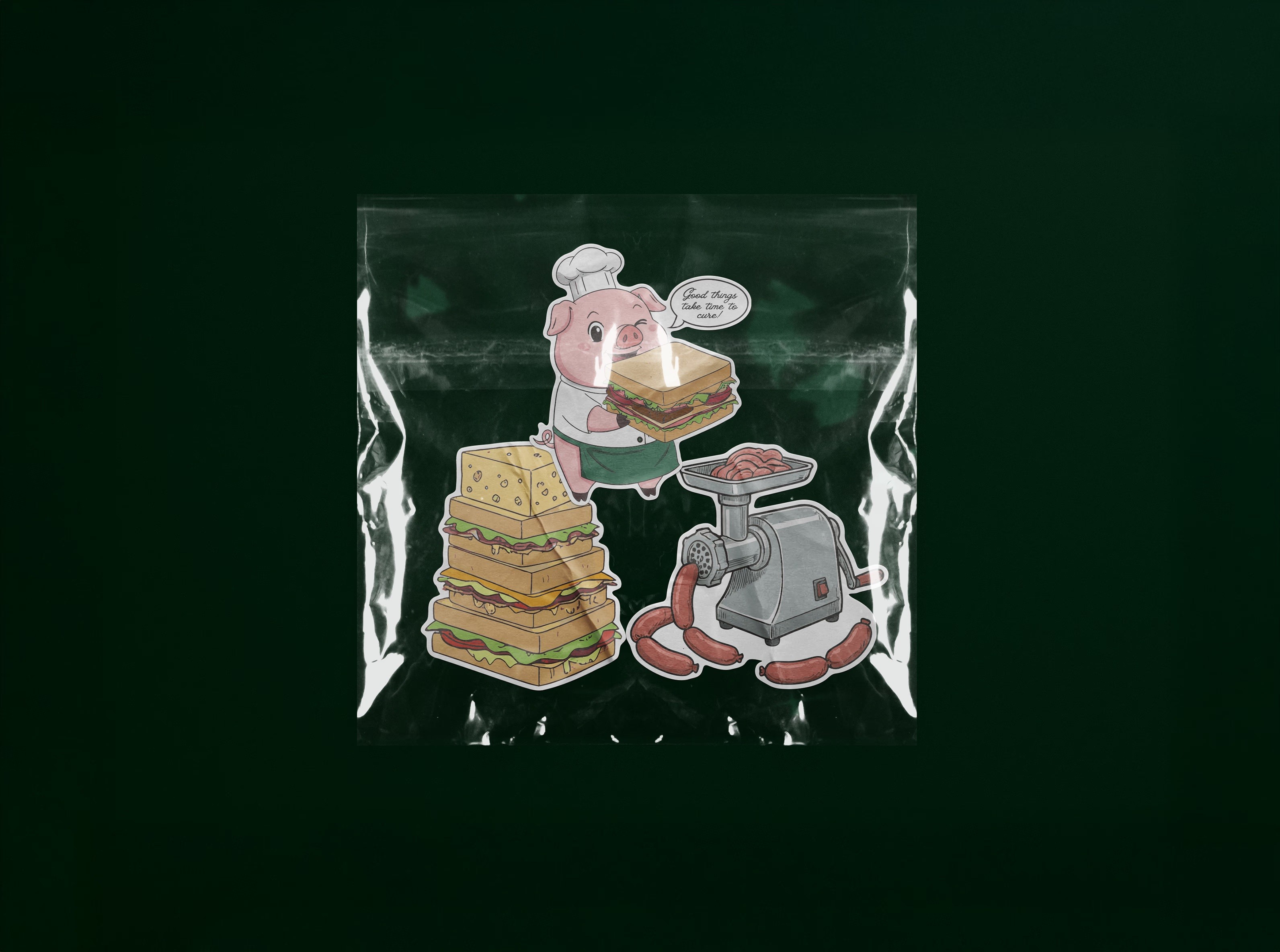 Four distinct pattern concepts were developed — ranging from illustrative, paper-based motifs ideal for sandwich wrapping and packaging, to bold typographic systems and Japanese-inspired stamp patterns. Beyond the patterns, I designed a custom stamp range for use across paper bags, staff paper deli hats, and packaging, as well as vinyl stickers inspired by the owner's love for anime to hand out to customers. Each element was presented with real-world applications and scaling considerations so the client could see how the system would live across every touchpoint.